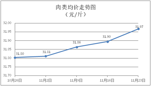 肉类商品价格微幅上涨。所监测的肉类商品价格波动情况为7涨1平,综合零售均价为每斤31.97元,环比上涨0.23%。其中:排骨、精瘦肉、牛肉、带骨羊肉零售均价分别为每斤30.21元、18.40元、46.96元、41.35元,环比分别上涨0.13%、上涨0.22%、上涨0.11%、上涨0.85%。