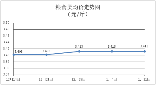 粮食类商品价格维持稳定。所监测的4种粮食类商品价格均持平,综合零售均价为每斤3.413元。其中:丝苗米、面粉零售均价分别为每斤3.54元、3.38元,环比均持平。