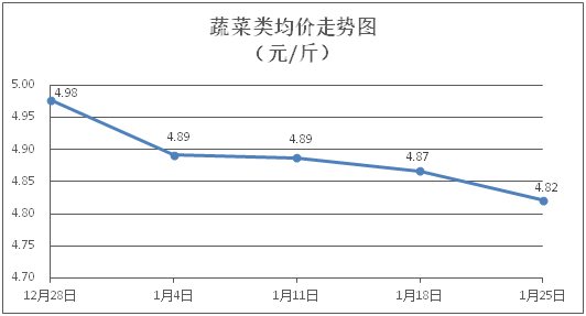 据本市21家农贸市场监测数据显示,上周(1月19日至1月25日)市场上各类“菜篮子”商品供应充足,所监测的7大类“菜篮子”商品价格环比总体表现为3涨4跌。其中:粮食类、水产类商品价格稳中略涨,食用油类、肉禽蛋类商品价格总体略降,蔬果类商品价格升降互现。