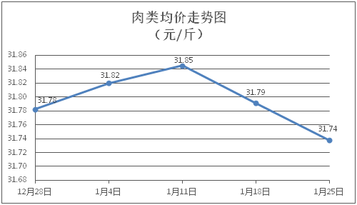 肉类商品价格总体略降。所监测的肉类商品价格波动情况为3涨4跌1平,综合零售均价为每斤31.74元,环比下降0.17%。其中:排骨、精瘦肉、牛肉、带骨羊肉零售均价分别为每斤29.13元、17.82元、46.92元、41.63元,环比分别下降0.51%、下降1.00%、上涨0.28%、上涨0.14%。