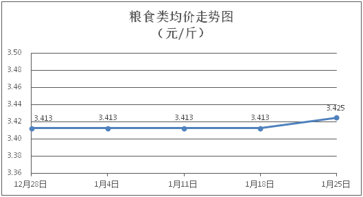 粮食类商品价格稳中有涨。所监测的粮食类商品价格波动情况为1涨3平,综合零售均价为每斤3.425元,环比上涨0.37%。其中:丝苗米、面粉零售均价分别为每斤3.54元、3.43元,环比分别持平、上涨1.48%。