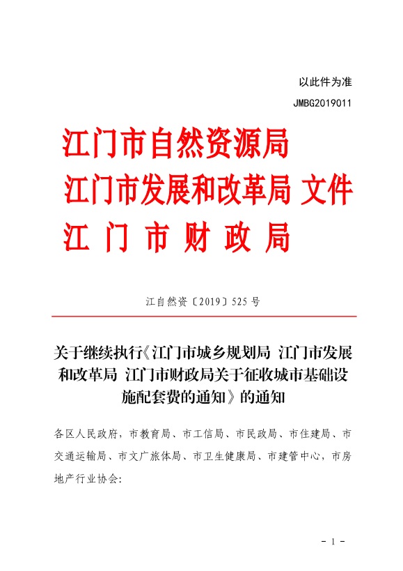 关于继续执行《江门市城乡规划局 江门市发展和改革局 江门市财政局关于征收城市基础设施配套费的通知》的通知_政策解读_江门市发展和改革局
