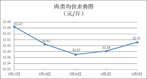 据本市21家农贸市场监测数据显示,上周(6月2日至6月9日)市场上各类“菜篮子”商品供应充足,所监测的7大类“菜篮子”商品价格3涨2跌2平。其中:与上周比(环比),粮油类商品价格基本平稳,肉类、水果类、水产类商品价格略有上涨,禽蛋类、蔬菜类商品价格总体略降。端午节日效应拉动猪肉水产价格小幅上涨,预计节后肉菜蛋等鲜活农产品需求减少,价格回落。