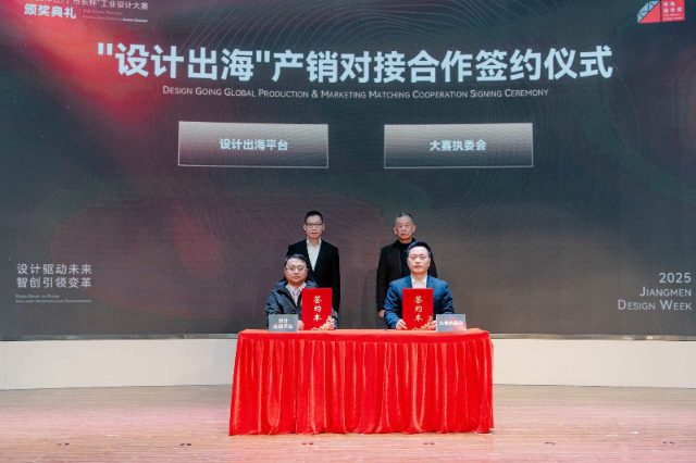 为推动设计成果加速转化,张斌副局长代表大赛执委会与“设计出海平台”签订合作协议,推动“江门制造”“江门设计”与全球销售体系实现深度耦合。此外,获奖文创设计师、崇左文旅代表与江门文旅交通集团、江门农控集团共同签署协议,旨在推动本土优秀非遗文创作品及崇左非遗文创产品进入“江门优品”“江门文旅”供应链体系,进一步加速设计成果市场化,彰显江门在粤桂协作的主动担当。