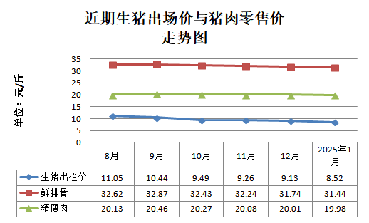 我市生猪、仔猪出场价出栏均价分别为每公斤17.04元、24.72元,环比分别下降5.86%、下降28.51%,同比分别上涨13.90%、下降12.09%;鲜排骨、精瘦肉、牛肉、带骨羊肉零售均价分别为每斤31.44元、19.98元、45.63元、41.42元,环比分别下降0.95%、下降0.15%、下降0.11%、下降1.26%,同比分别上涨7.63%、上涨9.78%、下降14.84%、下降7.17%;饲料类价格,玉米、豆粕、麦皮购进均价分别为每公斤2.40元、3.31元、2.36元,环比分别下降6.61%、下降3.50%、上涨9.26%,同比分别下降9.09%、下降11.50%、上涨8.76%。