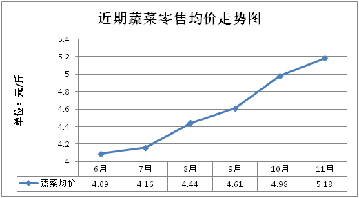 30种家常菜品种价格26涨4跌,综合零售价格为5.18元/500g,环比上涨4.86%,同比上涨16.93%。涨幅居前的品种包括茄子、菠菜、莴笋,零售均价分别为每斤5.17元、8.92元、5.84元,环比分别上涨20.51%、18.46%、16.57%,同比分别上涨24.58%、上涨53.27%、上涨37.09%。跌幅靠前的品种为菜心、西洋菜、水东芥菜,零售均价分别为每斤5.72元、6.09元、4.82元,环比分别下降4.67%、3.49%、1.63%,同比分别上涨22.49%、上涨24.80%、上涨21.72%。