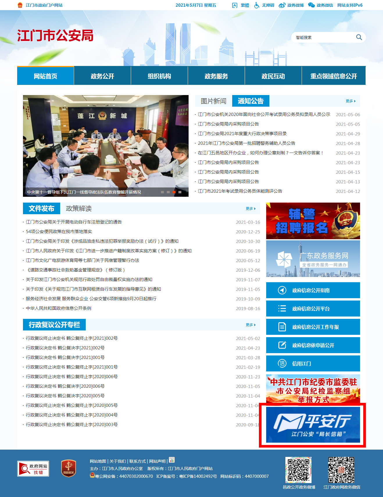 方式一:登录江门市公安局政府信息公开平台(频道)