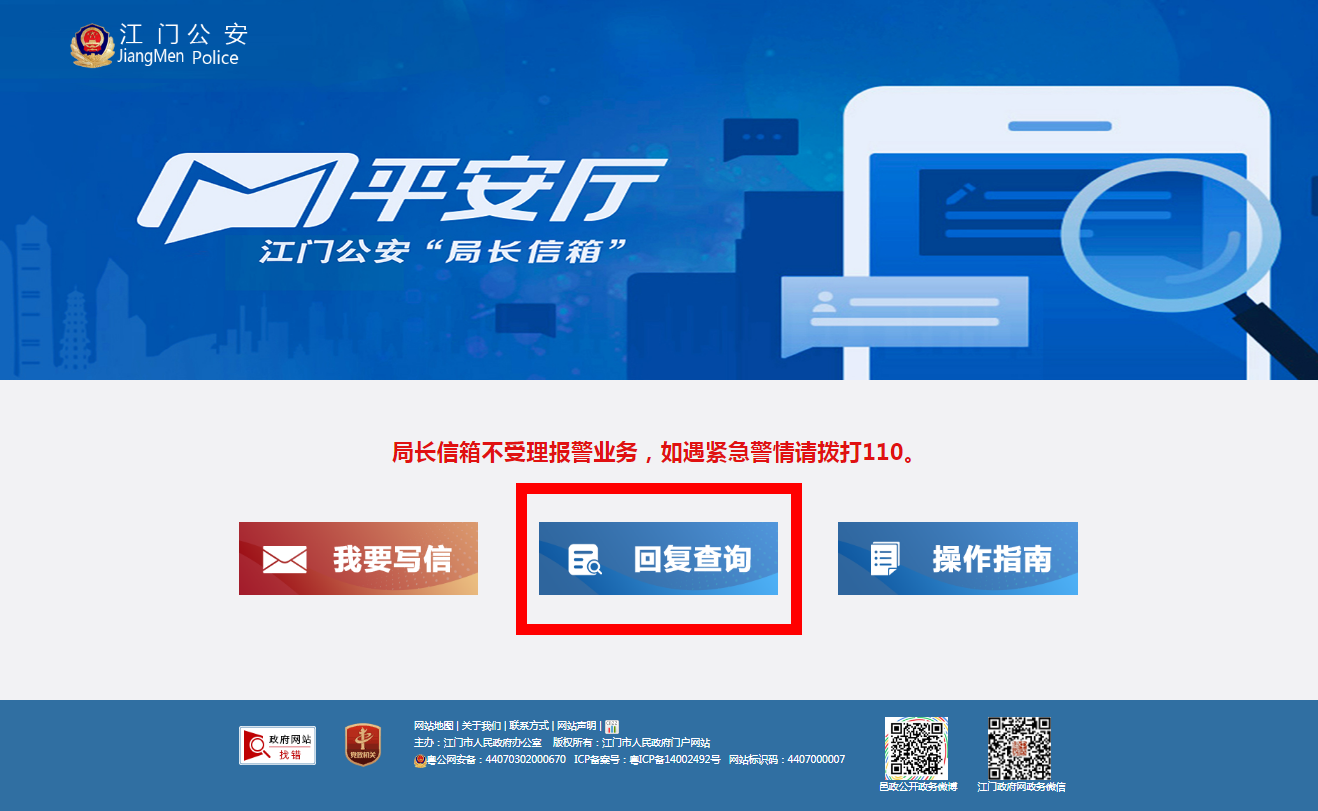 第四步:在首页点击“回复查询”,进行验证后可查询局长回复