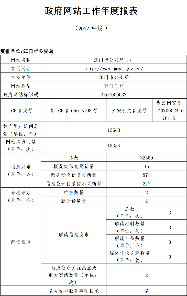 2017年政府网站工作年度报表(江门市公安局)