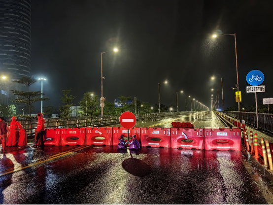 受台风“苏拉”影响,9月2日0时,外海大桥实施封闭交通管制。当日市区公路事务中心正在外海大桥封闭中山岸时,一位车主和家人冒着大风淋着雨,焦急万分上前求助。