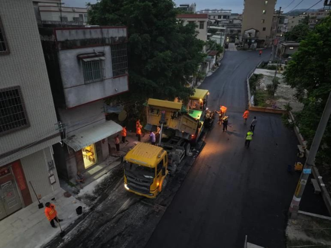 7月26日晚上21时,杜阮镇松岭村传来一阵欢呼和鼓掌声。在夜色笼罩下,刚刚完成沥青路面铺装的Y118乡道犹如一条崭新发亮的黑色缎带,由村口蜿蜒铺展至村内,将一幢幢民居连接起来,与路旁的鱼塘、绿树相映成趣,成为一道耀眼的乡村风景线。