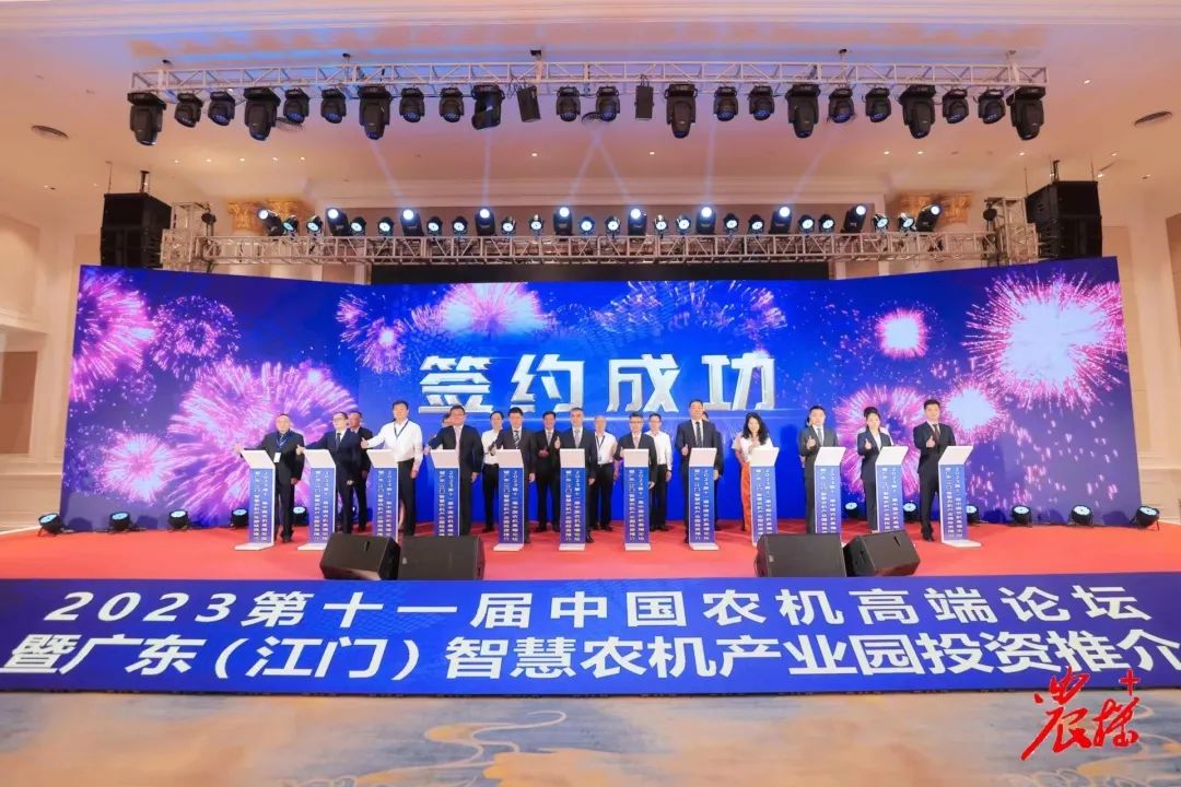 活动现场,江门发展集团、江门农控集团协同台山市,与21家企事业单位签署合作协议,园区招商引资初显成效,开启智慧农机产业园开发建设新篇章。