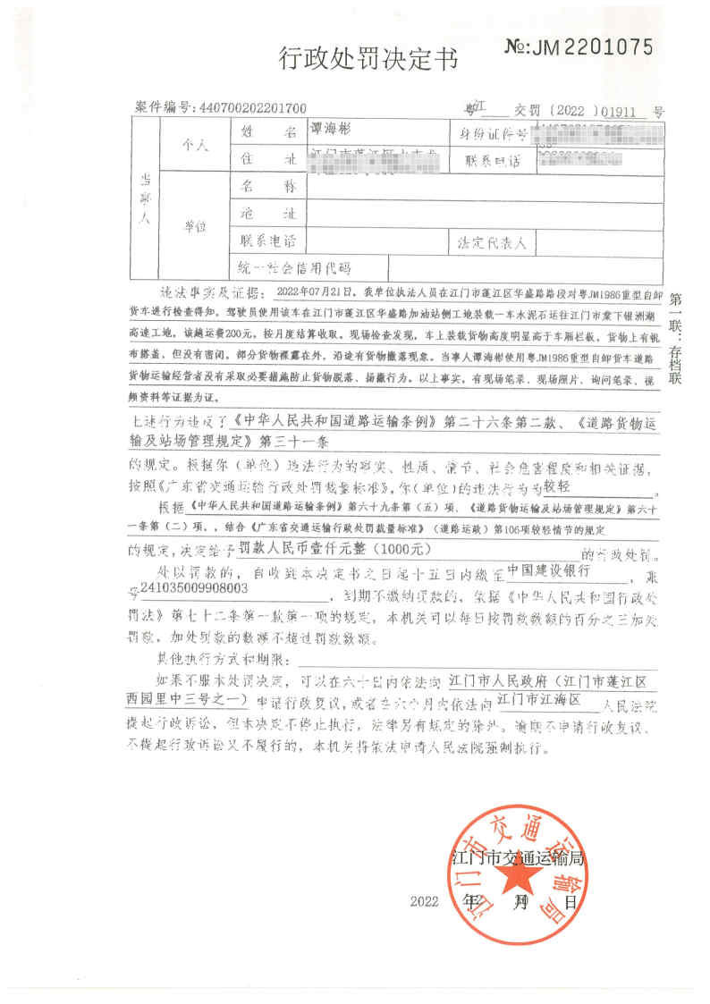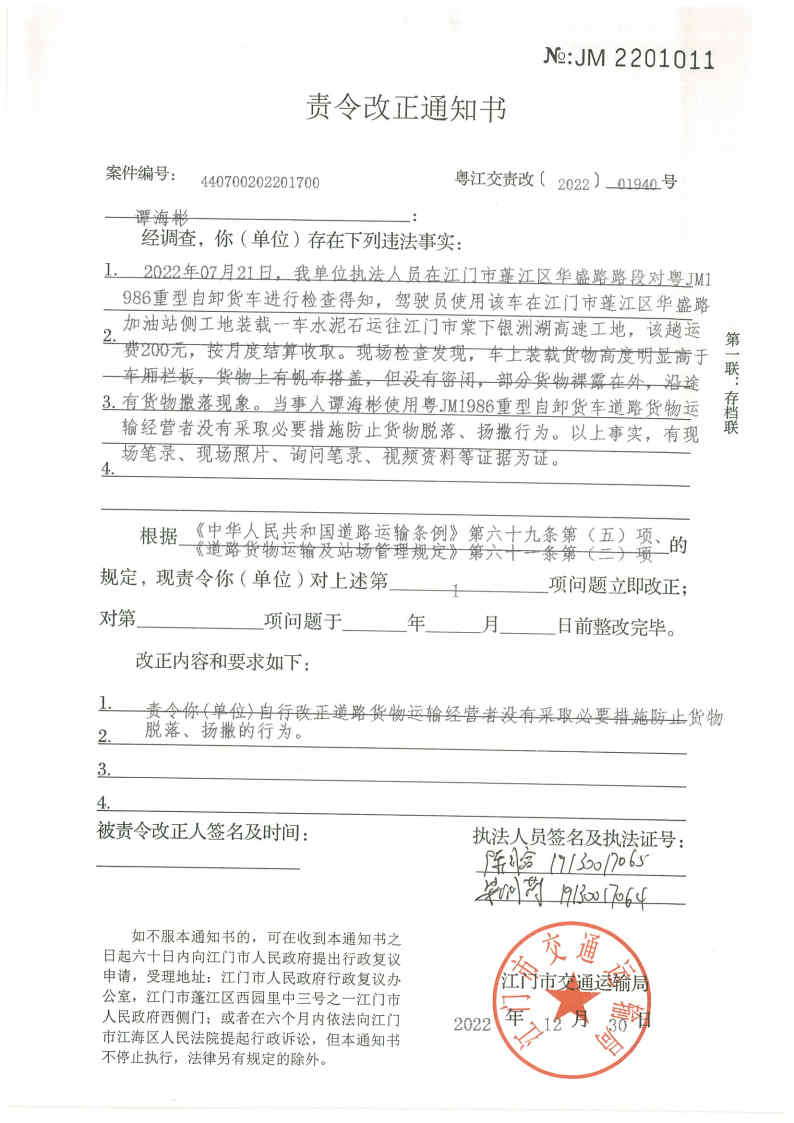 你(单位)因违反交通运输行政管理法规,本机关已作出行政处罚决定和责令改正通知书(具体内容详见附件)。依照《中华人民共和国民事诉讼法》第九十二条的规定,因受送达人采用其他方式无法送达,现向你(单位)公告送达《行政处罚决定书》和《责令改正通知书》。自公告之日起,经过30日即视为送达。