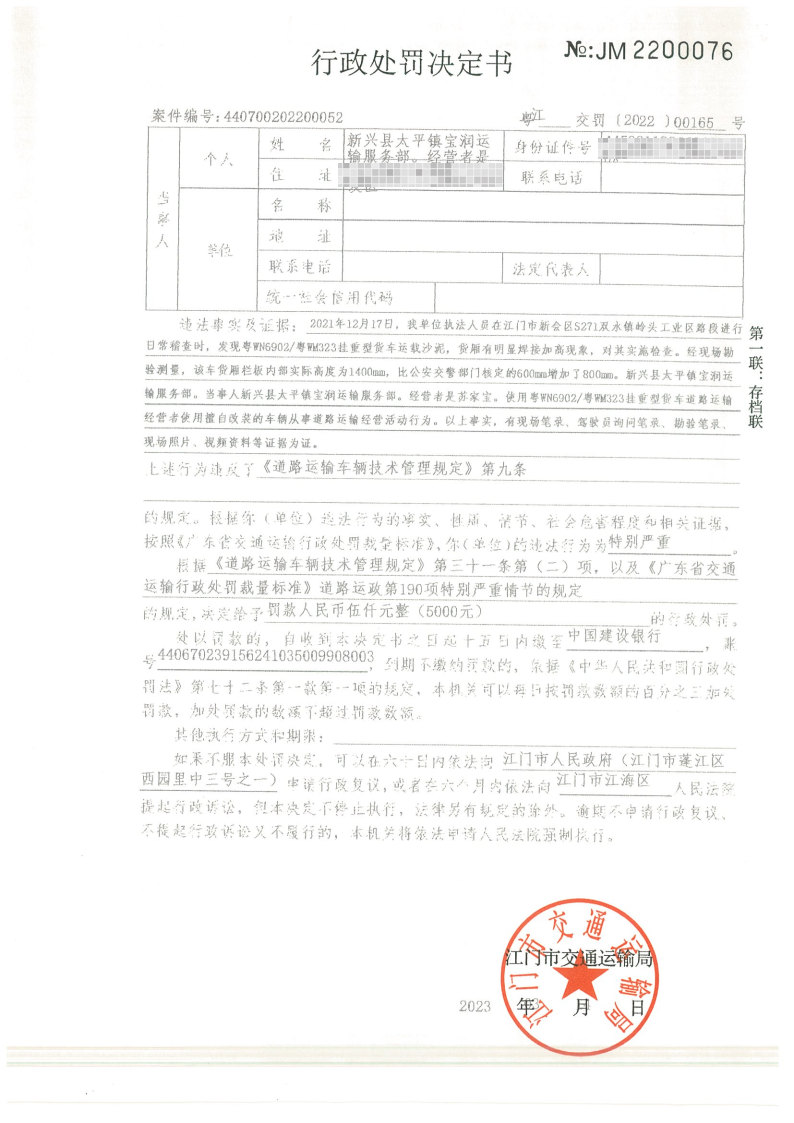 你(单位)因违反交通运输行政管理法规,本机关已作出行政处罚决定和责令改正通知书(具体内容详见附件)。依照《中华人民共和国民事诉讼法》第九十二条的规定,因受送达人采用其他方式无法送达,现向你(单位)公告送达《行政处罚决定书》和《责令改正通知书》。自公告之日起,经过30日即视为送达。
