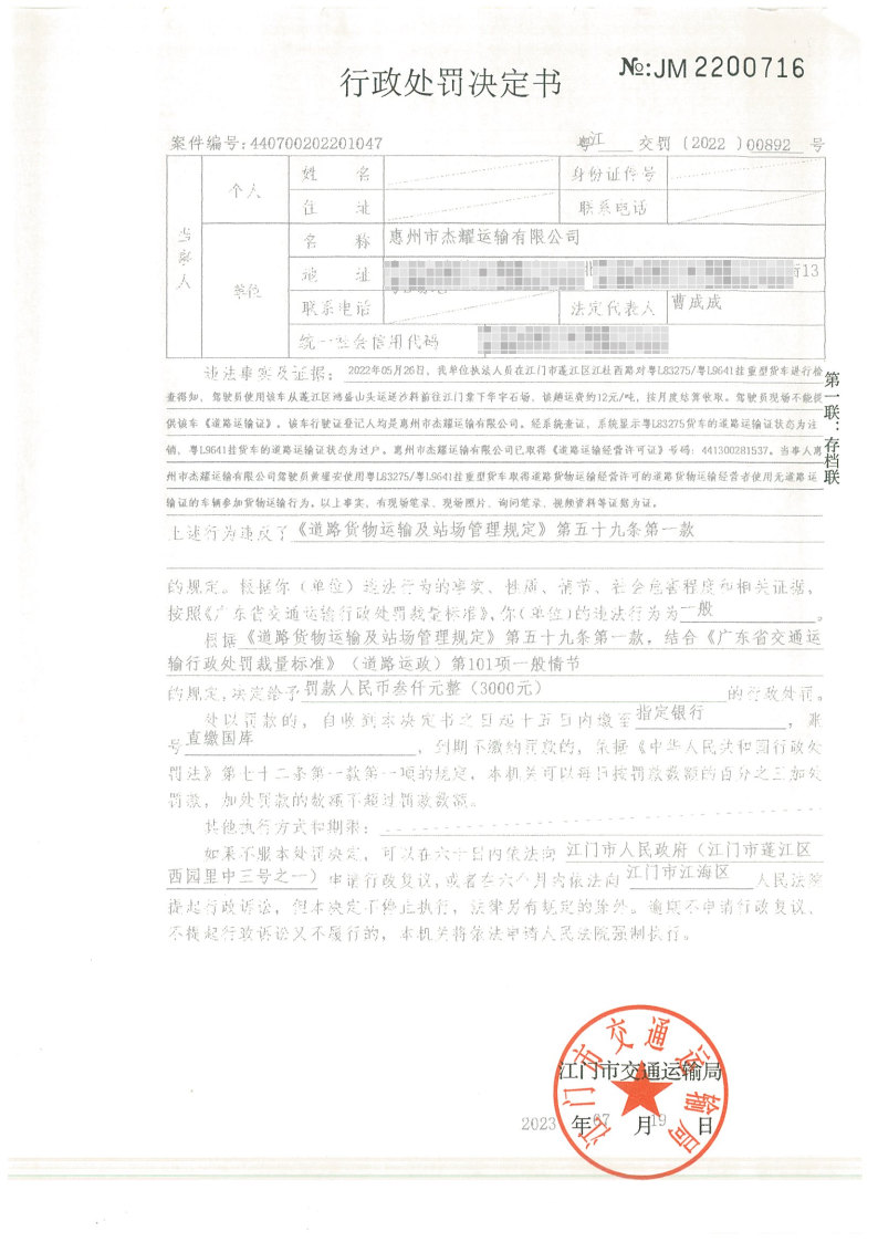 你(单位)因违反交通运输行政管理法规,本机关已作出行政处罚决定和责令改正通知书(具体内容详见附件)。依照《中华人民共和国民事诉讼法》第九十二条的规定,因受送达人采用其他方式无法送达,现向你(单位)公告送达《行政处罚决定书》和《责令改正通知书》。自公告之日起,经过30日即视为送达。