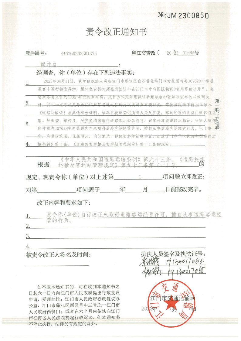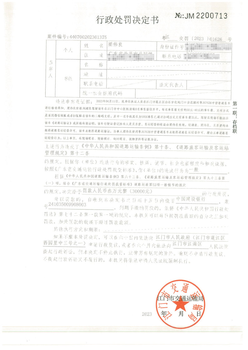 你(单位)因违反交通运输行政管理法规,本机关已作出行政处罚决定和责令改正通知书(具体内容详见附件)。依照《中华人民共和国民事诉讼法》第九十二条的规定,因受送达人采用其他方式无法送达,现向你(单位)公告送达《行政处罚决定书》和《责令改正通知书》。自公告之日起,经过30日即视为送达。