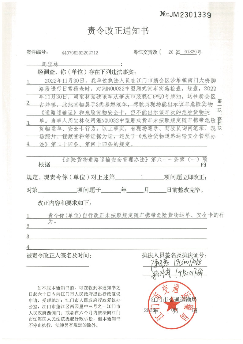 江门市交通运输局行政处罚决定书和责令改正通知书送达公告(江交执罚责公告﹝2023﹞39号)_交通运输执法专栏_江门市交通运输局