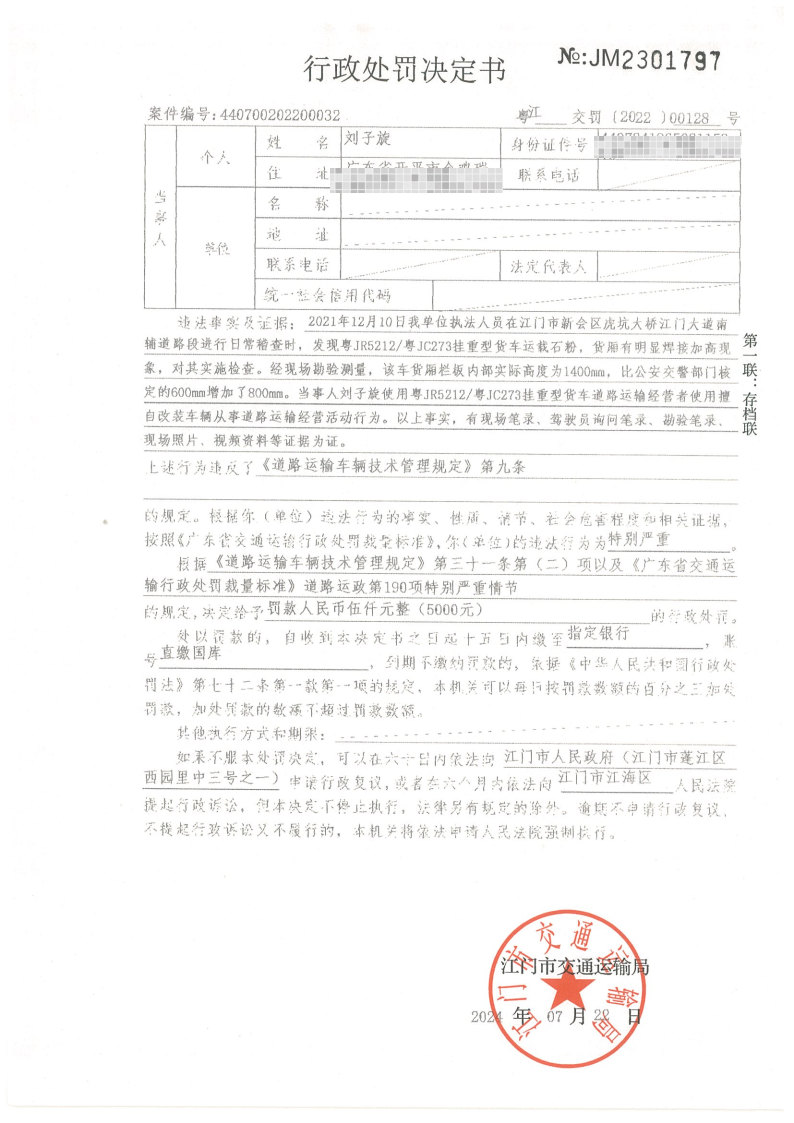 你(单位)因违反交通运输行政管理法规,本机关已作出行政处罚决定和责令改正通知书(具体内容详见附件)。依照《中华人民共和国民事诉讼法》第九十五条的规定,因受送达人采用其他方式无法送达,现向你(单位)公告送达《行政处罚决定书》和《责令改正通知书》。自公告之日起,经过30日即视为送达。