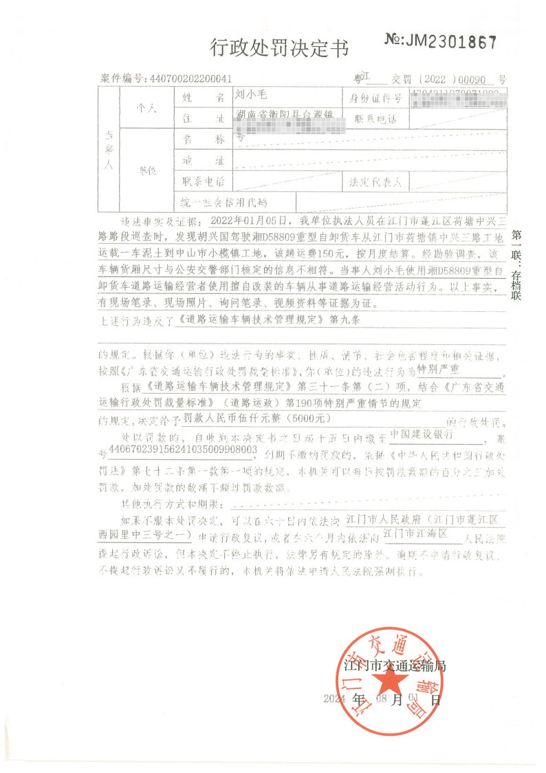 你(单位)因违反交通运输行政管理法规,本机关已作出行政处罚决定和责令改正通知书(具体内容详见附件)。依照《中华人民共和国民事诉讼法》第九十五条的规定,因受送达人采用其他方式无法送达,现向你(单位)公告送达《行政处罚决定书》和《责令改正通知书》。自公告之日起,经过30日即视为送达。