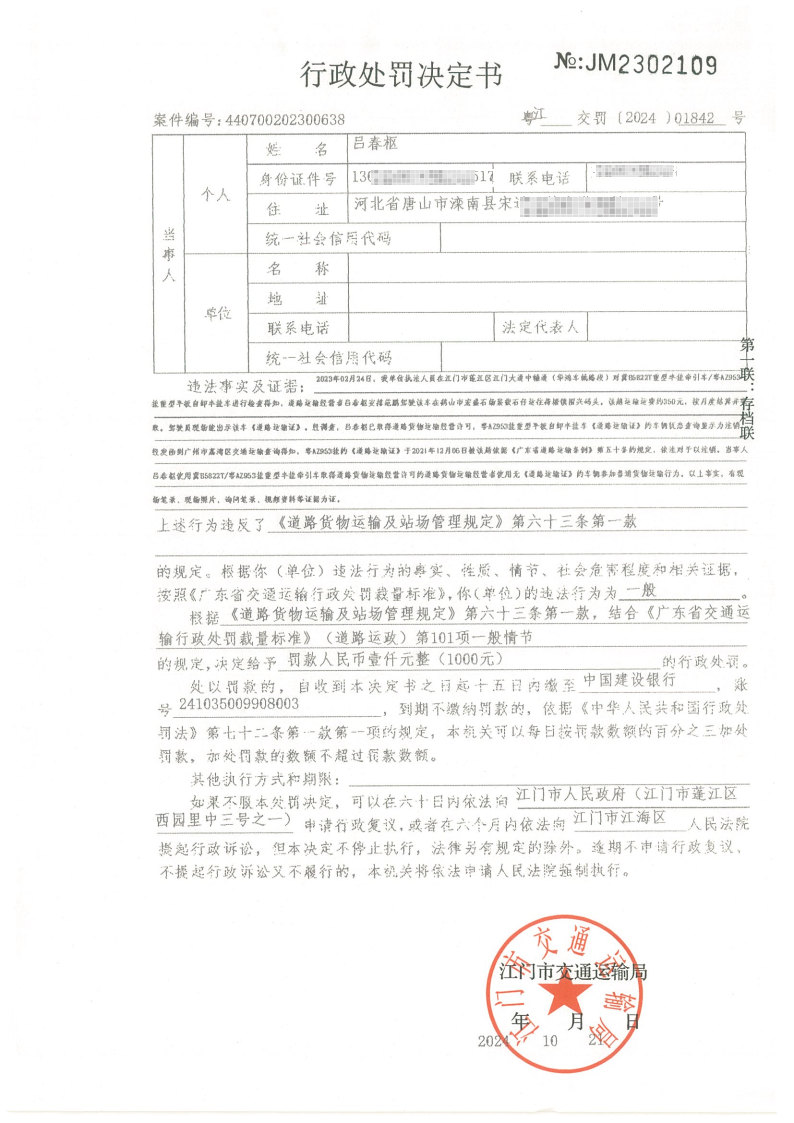 如不服处罚决定,可以自《行政处罚决定书》和《责令改正通知书》送达之日起60日内向江门市人民政府申请行政复议,或者在6个月内依法向江门市江海区人民法院提起行政诉讼,但行政处罚决定不停止执行,法律另有规定的除外。逾期不申请行政复议、不提起行政诉讼又不履行的,本机关将依法申请人民法院强制执行或者依照有关规定强制执行。