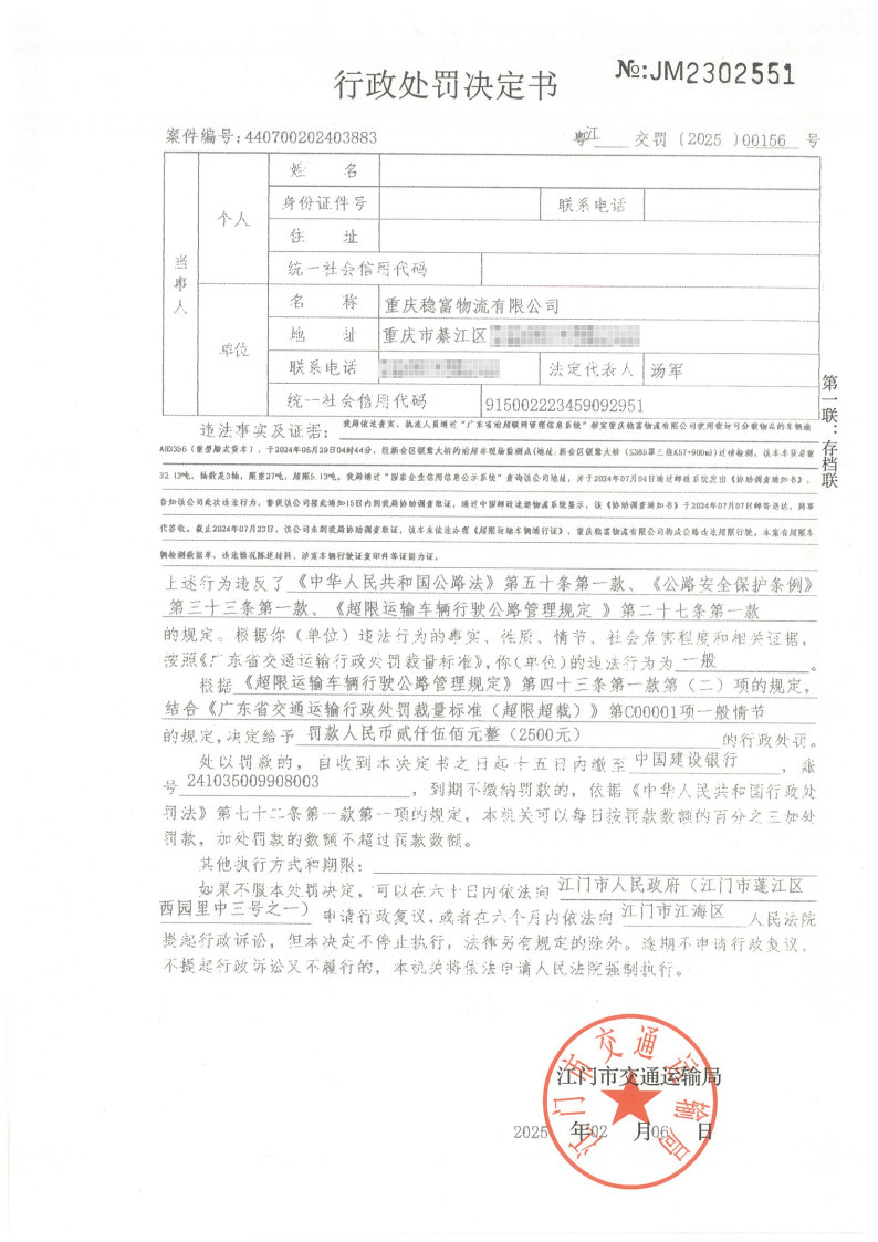 你(单位)因违反交通运输行政管理法规,本机关已作出行政处罚决定和责令改正通知书(具体内容详见附件)。依照《中华人民共和国民事诉讼法》第九十五条的规定,因受送达人采用其他方式无法送达,现向你(单位)公告送达《行政处罚决定书》和《责令改正通知书》。自公告之日起,经过30日即视为送达。