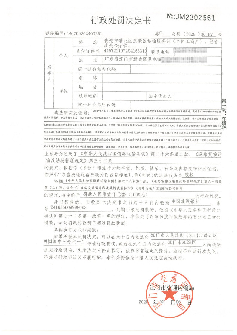 联系地址:江门市潮连大道18号江门市交通运输局违章处理窗口,电话:0750-3887771。