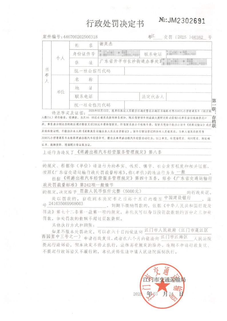 如不服处罚决定,可以自《行政处罚决定书》和《责令改正通知书》送达之日起60日内向江门市人民政府申请行政复议,或者在6个月内依法向江门市江海区人民法院提起行政诉讼,但行政处罚决定不停止执行,法律另有规定的除外。逾期不申请行政复议、不提起行政诉讼又不履行的,本机关将依法申请人民法院强制执行或者依照有关规定强制执行。