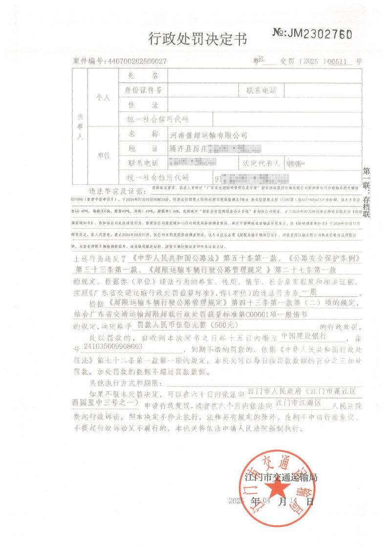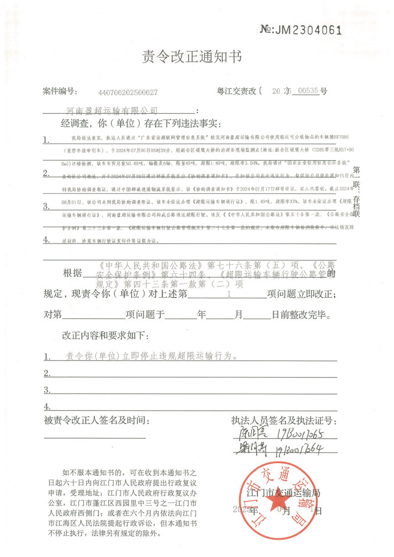你(单位)因违反交通运输行政管理法规,本机关已作出行政处罚决定和责令改正通知书(具体内容详见附件)。依照《中华人民共和国民事诉讼法》第九十五条的规定,因受送达人采用其他方式无法送达,现向你(单位)公告送达《行政处罚决定书》和《责令改正通知书》。自公告之日起,经过30日即视为送达。
