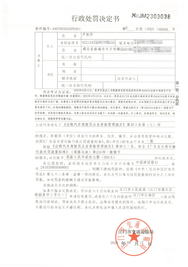 联系地址:江门市潮连大道18号江门市交通运输局违章处理窗口,电话:0750-3887771。