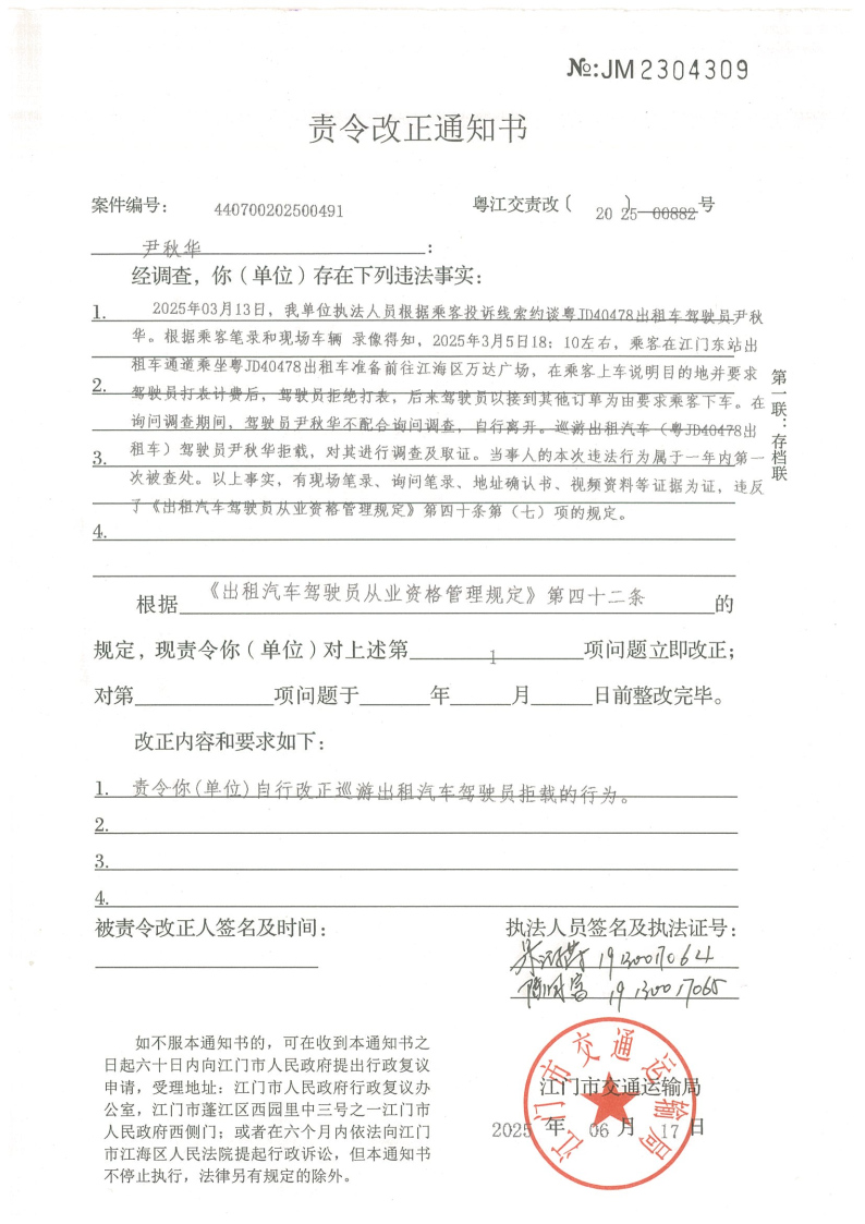 如不服处罚决定,可以自《行政处罚决定书》和《责令改正通知书》送达之日起60日内向江门市人民政府申请行政复议,或者在6个月内依法向江门市江海区人民法院提起行政诉讼,但行政处罚决定不停止执行,法律另有规定的除外。逾期不申请行政复议、不提起行政诉讼又不履行的,本机关将依法申请人民法院强制执行或者依照有关规定强制执行。