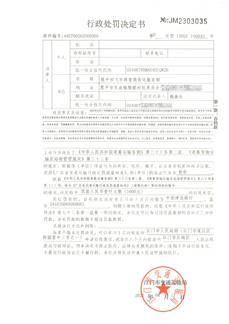 你(单位)因违反交通运输行政管理法规,本机关已作出行政处罚决定和责令改正通知书(具体内容详见附件)。依照《中华人民共和国民事诉讼法》第九十五条的规定,因受送达人采用其他方式无法送达,现向你(单位)公告送达《行政处罚决定书》和《责令改正通知书》。自公告之日起,经过30日即视为送达。