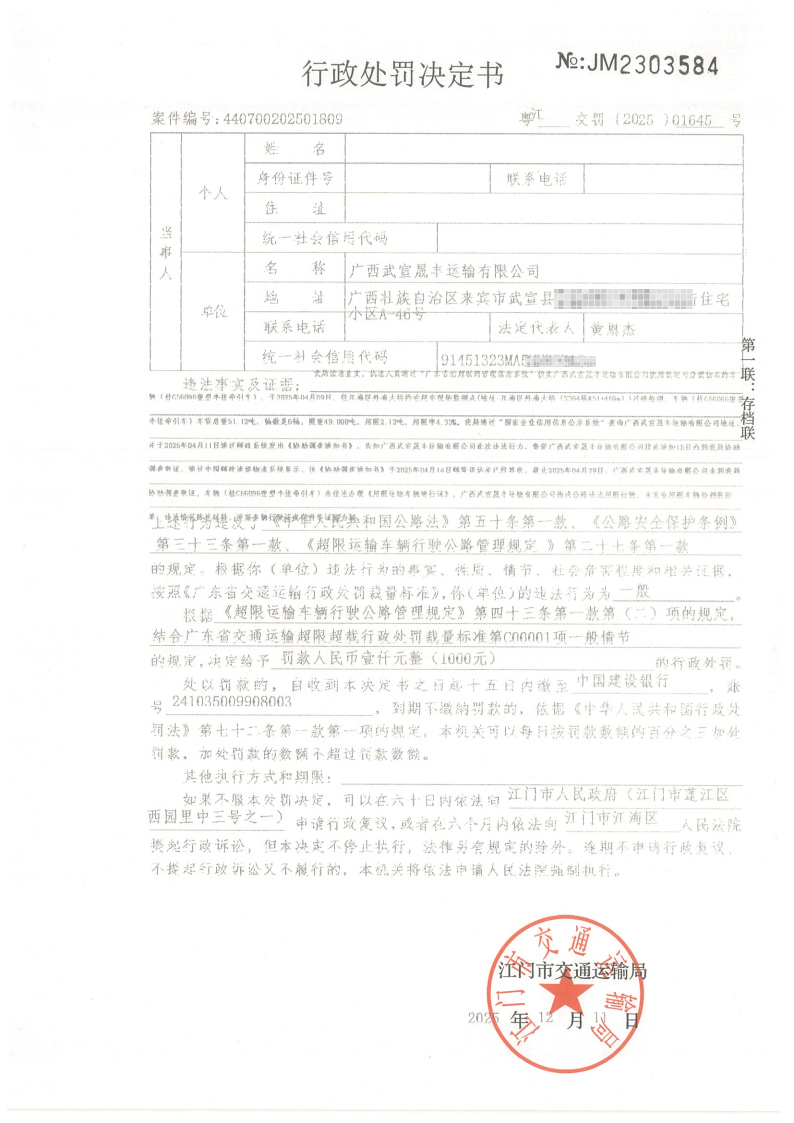 江门市交通运输局关于《行政处罚决定书》和《责令改正通知书》送达的公告(江交执罚责公告﹝2026﹞4号)_交通运输执法专栏_江门市交通运输局