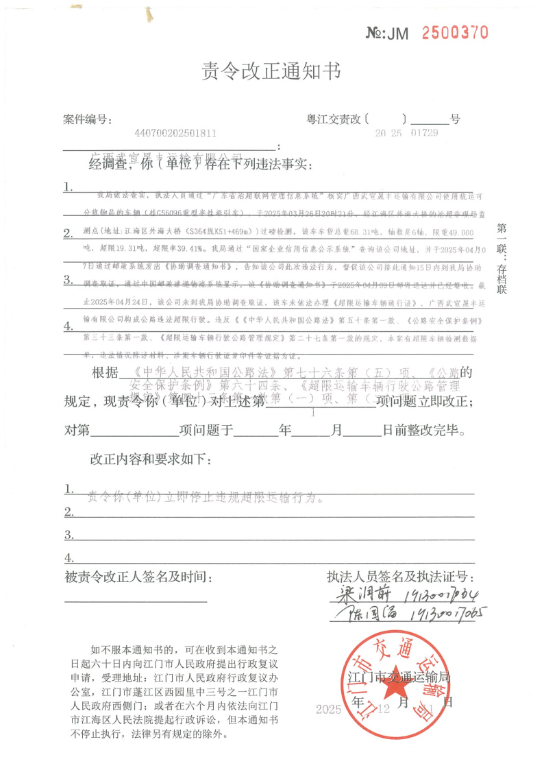 江门市交通运输局关于《行政处罚决定书》和《责令改正通知书》送达的公告(江交执罚责公告﹝2026﹞8号)_交通运输执法专栏_江门市交通运输局