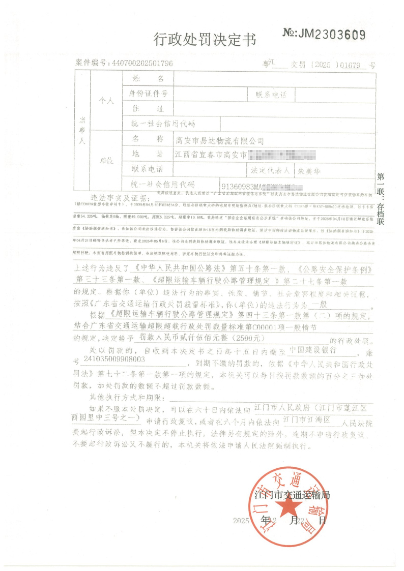 你(单位)因违反交通运输行政管理法规,本机关已作出行政处罚决定和责令改正通知书(具体内容详见附件)。依照《中华人民共和国民事诉讼法》第九十五条的规定,因无法以其他方式向你(单位)送达,现向你(单位)公告送达《行政处罚决定书》和《责令改正通知书》。自发出公告之日起,经过30日即视为送达。