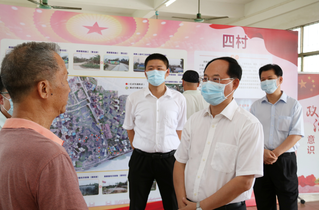去年以来,市、区、镇、村同向发力,将扫黑除恶专项斗争与基层组织建设同步推进,全力以赴抓好案件侦办和矛盾化解工作,重构了周郡村政治生态,推动了村党组织全面建设。林应武来到周郡村,与村民、老党员和基层干部深入交流,了解周郡村整治的前后变化,鼓励大家互相支持,一起努力把周郡村重塑为具有红色基因的先进村。