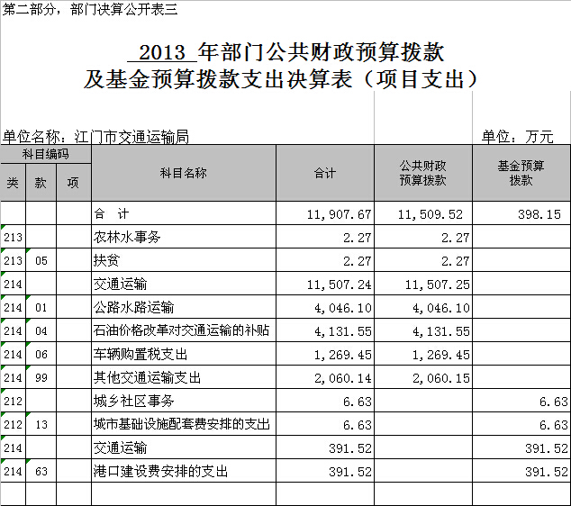 第一部分 2013 年江门市江门市交通运输局部门决算基本情况说明