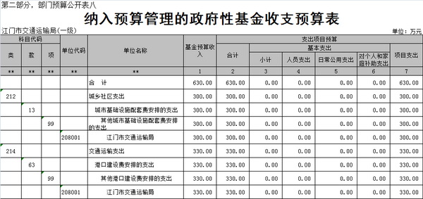 纳入部门预算编制有下属4个事业单位,包括:江门市市区交通运输管理总站、江门市市区地方公路养护中心、江门港引航站、江门市地方公路管理总站。