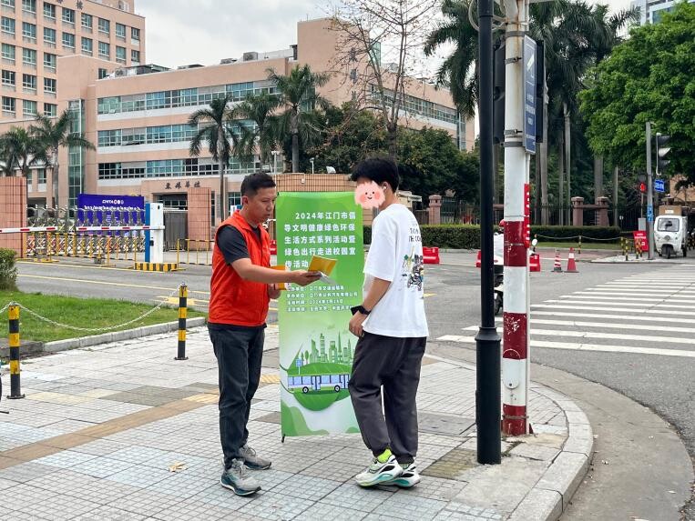 为宣传绿色出行理念,培育文明、健康、绿色、低碳的出行习惯,2024年3月28日,我局在五邑大学、中医药学校开展以“绿色出行走进校园”为主题的2024年绿色出行系列宣传活动。