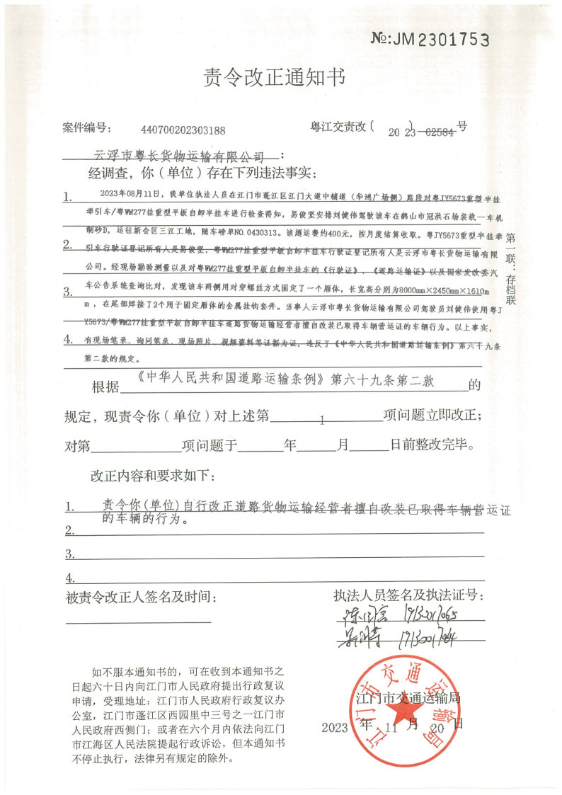 江门市交通运输局行政处罚决定书和责令改正通知书送达公告(江交执罚责公告﹝2023﹞44号)_通知公告_江门市交通运输局