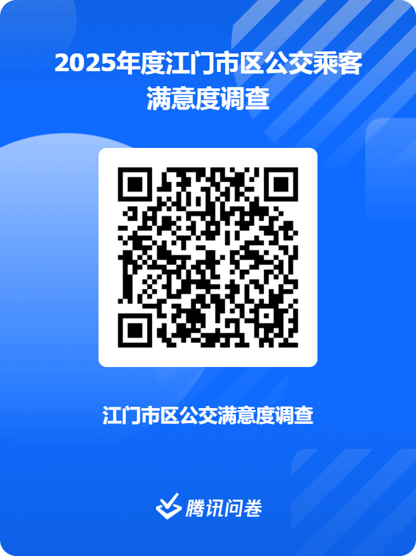 @尊敬的市民朋友,为更全面了解市民公交出行需求,持续提升江门市区公共交通服务品质,江门市交通运输局现正式启动2025年度公交乘客满意度调查。