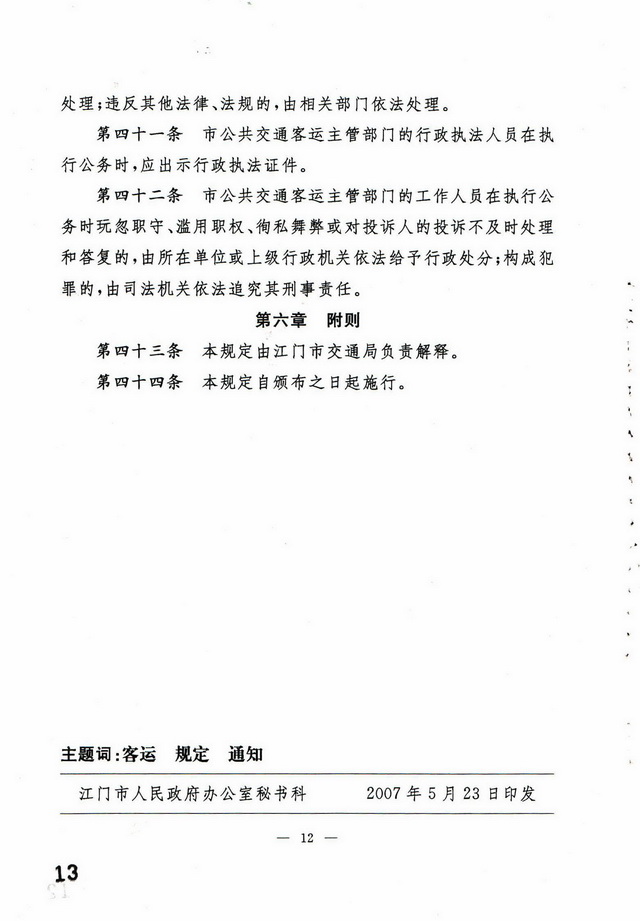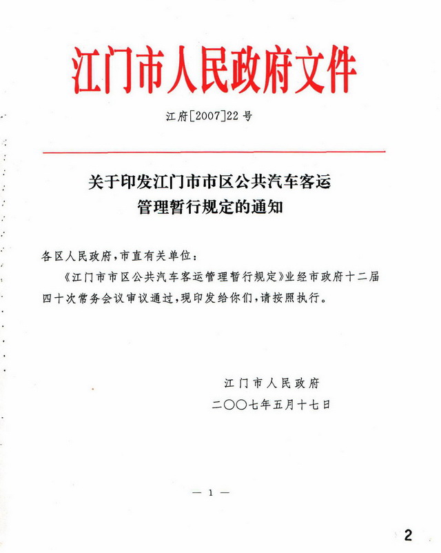 关于印发江门市市区公共汽车客运管理暂行规定的通知 【已废止】_政策法规_江门市交通运输局