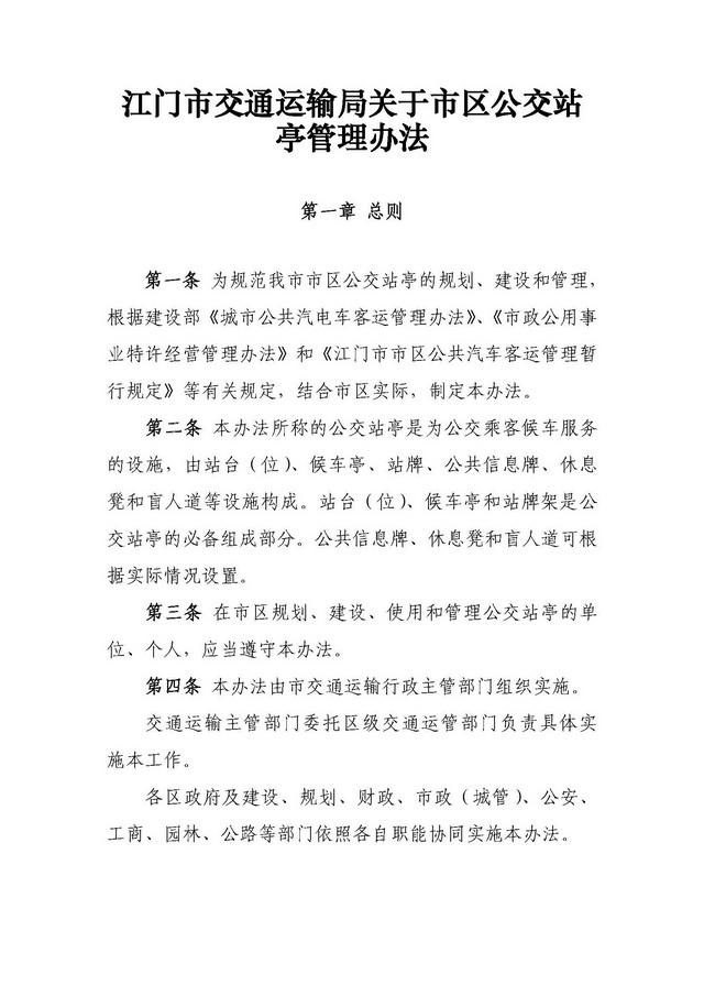 关于印发《江门市交通运输局关于市区公交站亭管理办法》的通知 【已废止】_政策法规_江门市交通运输局