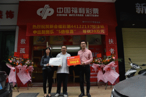喜讯不断,江门市新会区又爆出一等奖!继3月9日沙堆镇第44122121号投注站斩获2021年江门第一个双色球一等奖922万元后,4月16日会城街道第44122137号投注站又击中即开票“5倍惊喜”一等奖20万元,中奖连连,彩民为之欢呼雀跃。4月19日,江门市、区两级福彩中心为该投注站举行庆祝活动,颁发中奖证书和宣传费奖励。