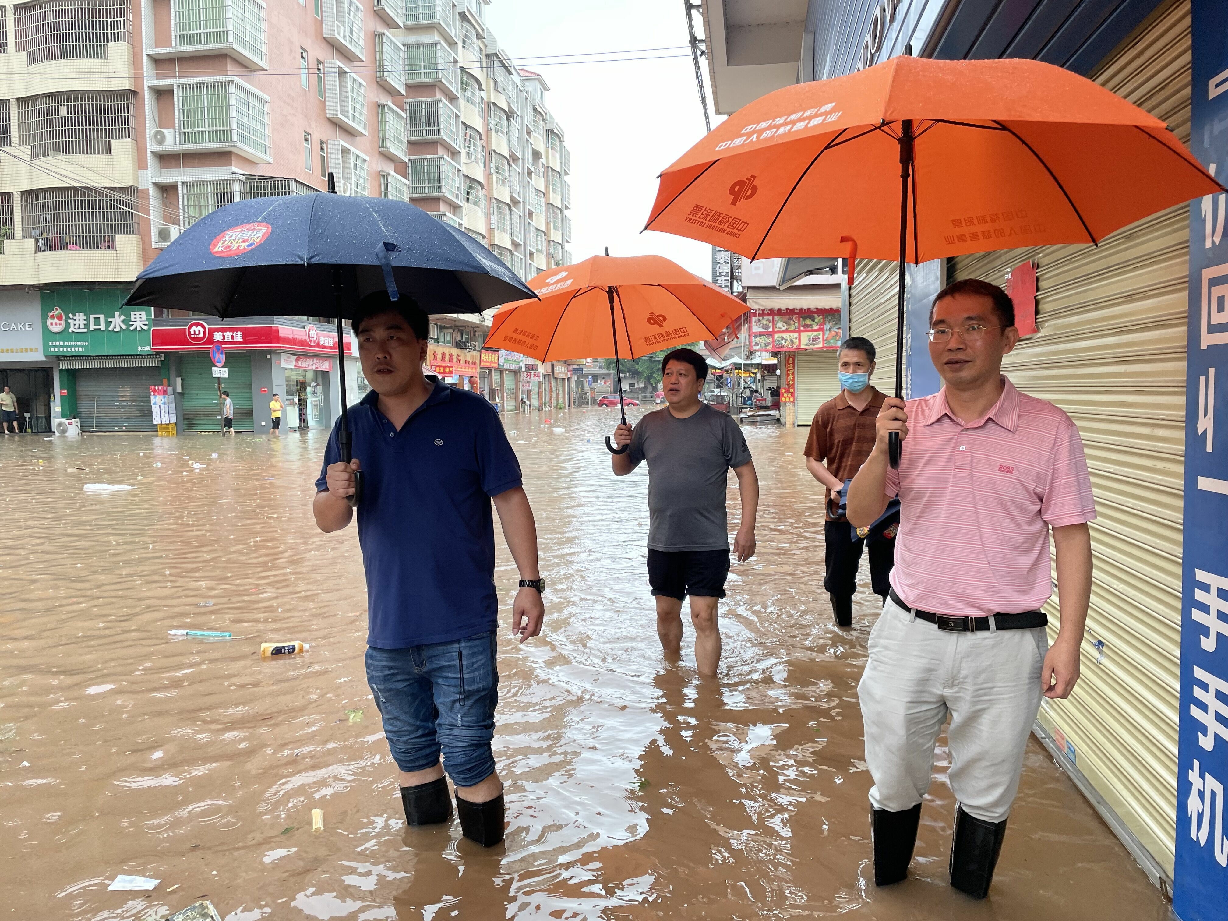江门市福彩中心在收到开平市福彩中心通报后,给合党史学习教育“我为群众办实事”实践活动,中心领导班子带领市场部、技术部工作人员,带上投注机和备件等,火速前往站点检查受损情况。据现场了解,受浸的四个站点已初步退水,销售台和投注区的家具被浸约十多公分,投注机和刮刮乐即开票均没有损坏。在水口镇新华路57号的第44122463号投注站,吴占求主任向站点负责人黄先生详细地了解站点受浸损失情况和对销售的影响,鼓励黄先生树立信心,积极做好恢复营业的准备,并现场检查站点的电路和网络。对站点的复工复产工作,吴占求主任提出指导意见,既要在内涝全面退去后全面检查一次电路、网络和销售设备,保证电、网、机器的正常运行,并在销售过程中加强对销售设备的运行监测,如出现故障及时联系市中心技术人员进行维修,又要及时对投注站内外作一次全面的清洁,彻底对设备和环境消毒,做到安全复工复产与健康防疫两不误。