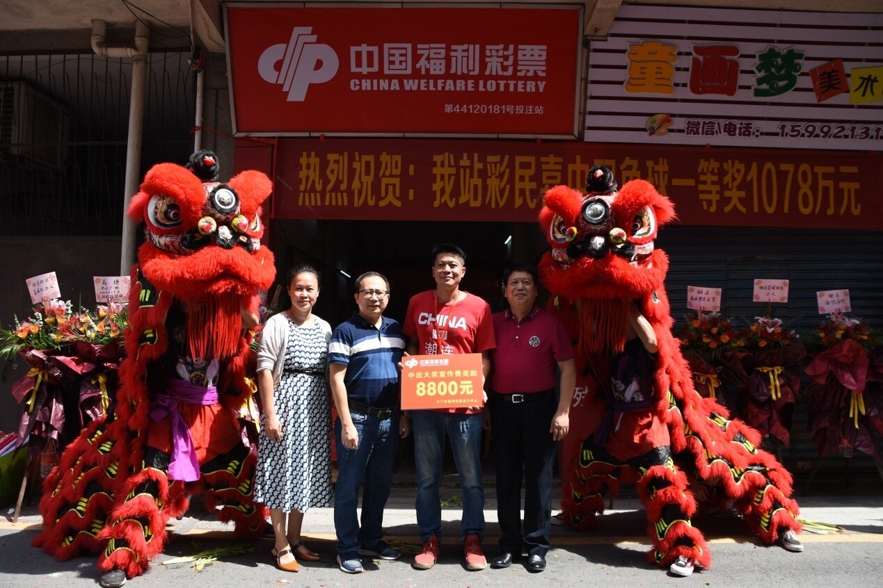 江门市福彩中心为44120181投注站举行庆祝千万元大奖宣传活动