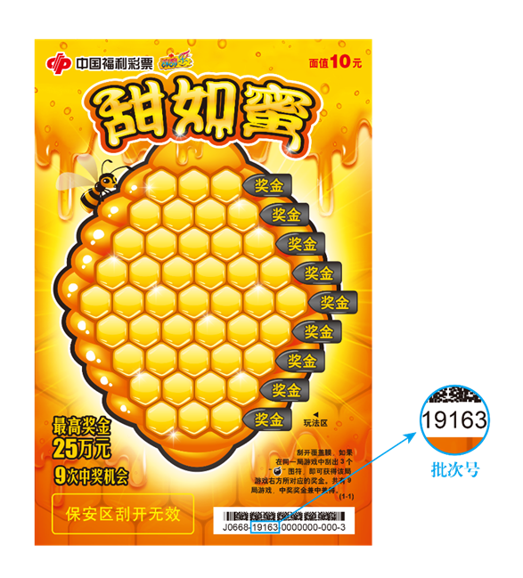即开型福利彩票批次的识别示例如图: