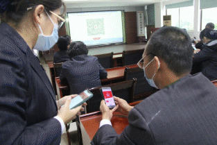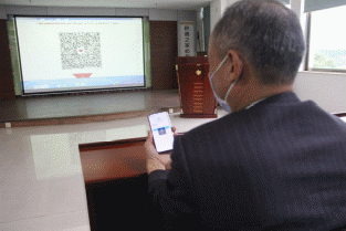 我馆职工正在使用手机操作扫码捐款