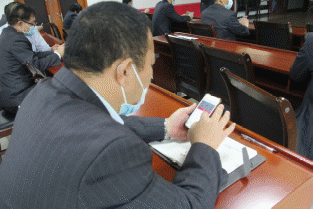 党员正在使用手机操作扫码捐款