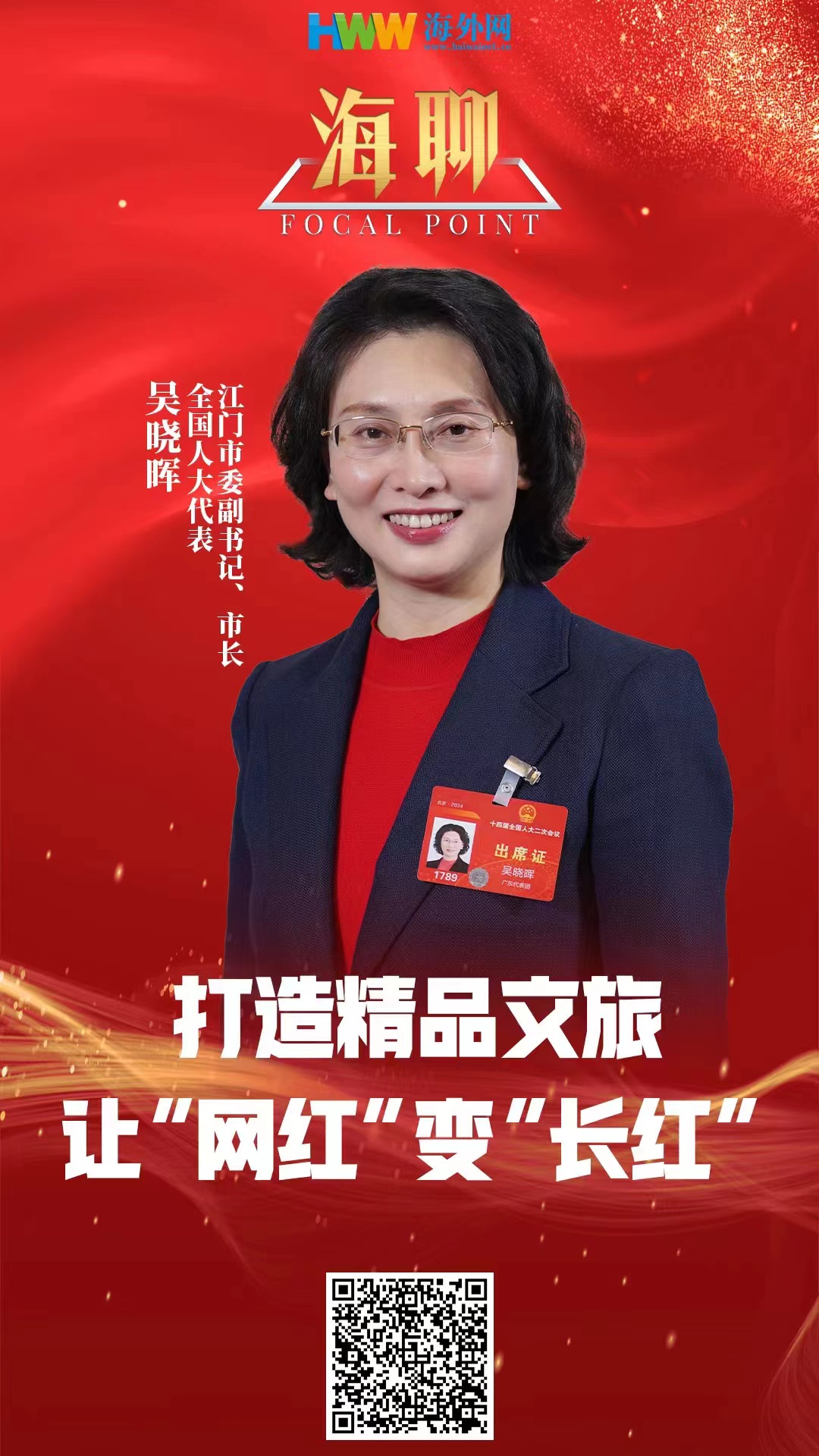 全国两会期间,全国人大代表,市委副书记、市长吴晓晖接受了人民日报海外版的采访,从产业、侨乡、文旅三个方面,呈现了江门这座富有魅力的南方城市。