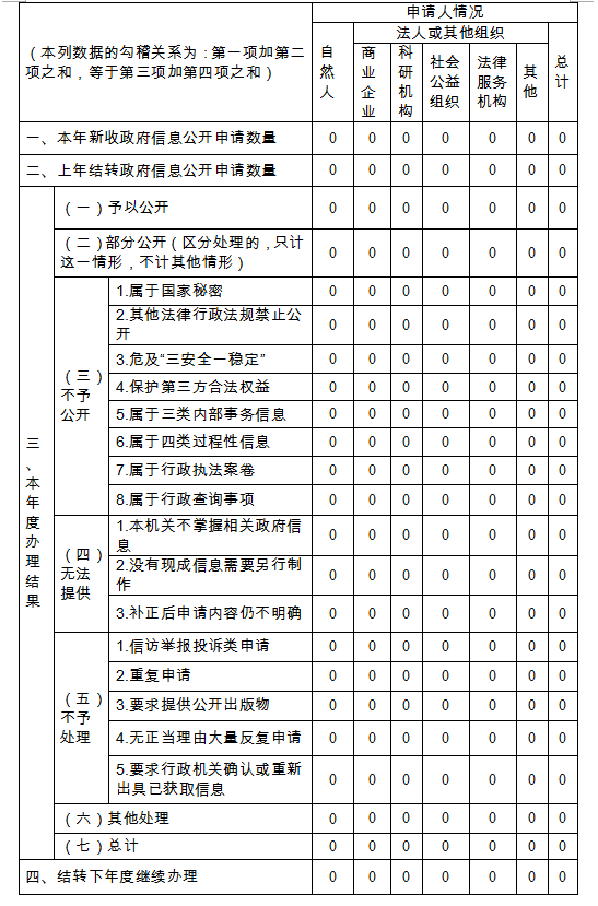 三、收到和处理政府信息公开申请情况